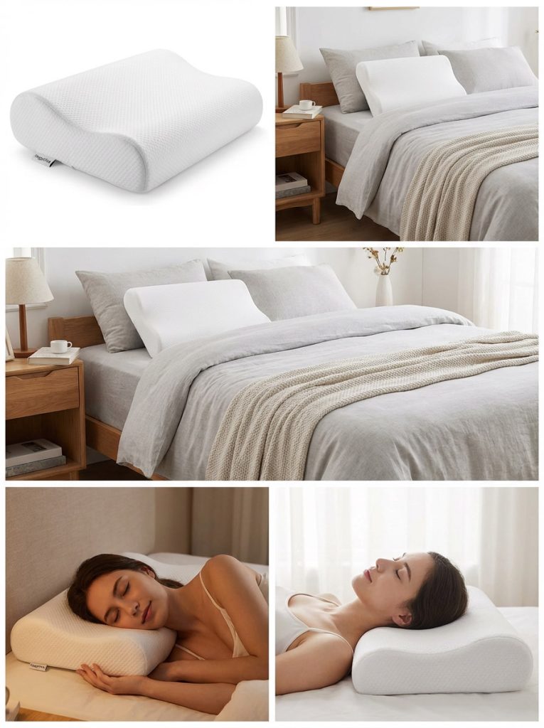 • Ergonomic Contour Support:Contoured memory foam pillow with dual-height design helps align head, neck, and shoulders to reduce pressure and support proper spinal alignment during sleep.